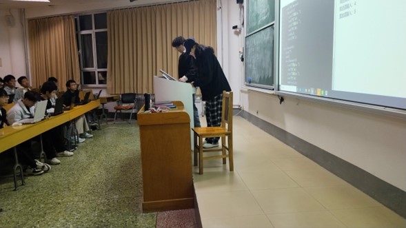 在实操阶段,同学们自主编写程序代码,遇到问题时积极向陈宇航请教,他逐一进行一对一指导,同学们均以认真态度投入其中。