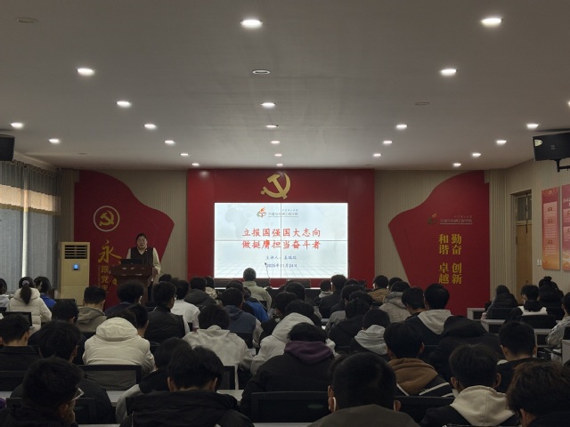 为加强团员思想政治引领,筑牢青年信仰根基,11月24日,学院在12号教学楼217会议室举行“立报国强国大志向 做挺膺担当奋斗者”主题团课。本次团课由学院团委负责老师主讲,2025级部分团员代表参加。