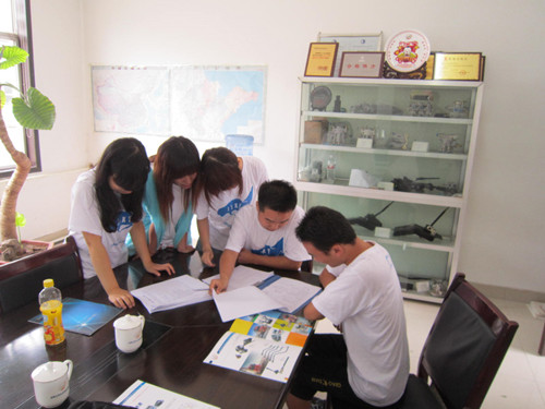 团队成员还参观了公司研发部门,了解创新产品的研发历程,在查询大量相关资料和档案之后,队员们对企业有了更深层次了解,并分别采用调查问卷与座谈的方式与员工及总经理进行交流学习。在总经理的安排下,团队与公司的老员工进行交流,咨询他们公司转型升级的历程以及对公司未来发展的建议。老员工告诉队员,公司在技术方面确实存在一些问题,有待改进,作为规模不大的小企业,公司对于硬件、软件和机制的要求还有待提高,但是,每个人对于公司未来的发展都充满信心。