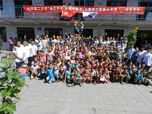 8月4日上午,“情系阜平,共筑中国梦”爱心支教团结业典礼暨结业联欢会在八里庄小学举行。八里庄小学校长白启东,支教团队全体成员及八里庄小学全体学生参加了结业典礼。