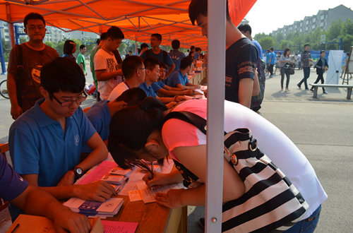 引导新来的同学们找到迎新大本营,带领他们存放行李,指导报名的同学办理入学手续,帮学弟学妹们提行李并带他们找到自己的寝室,这些都是志愿者的工作。虽然,他们的工作看起来并不是很困难,但是不能否认的是,他们的工作量的确很大。面对这么多的任务,志愿者们虽然都显得有些力不从心,但是没有一个人有所抱怨,相反,身为志愿者的同学说:“能够帮到新来的同学们,我们也感到十分的高兴。”我院的志愿者来自不同的专业,不同的班级。但是,大家都非常热心,始终保持着笑脸和愉快的心情来迎接每一位新同学。学院领导在各个宿舍楼下设置了迎新服务站。服务站工作人员免费向新生提供饮水,根据新生宿舍收据信息告诉他们具体楼层,并帮他们搬送行李等。据悉,服务站工作人员一直从早晨六点半工作到下午六点。