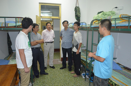 学院领导走进学生宿舍,详细了解新生的饮食起居,询问新生军训感受,鼓励新生积极适应新环境,结交新朋友,给新生的大学生活提出宝贵建议。每到一间宿舍,院领导都会详细检查宿舍的相关状况,叮嘱新生注意安全,按时休息,合理安排时间。“在新的环境里要相互适应,相互照顾,真诚相待,要在大学留下真挚的友谊。”党总支书记刘清良用真挚的话语告诫同学们要时刻保持团结。院领导深入学生宿舍中,使新生们深深感受到了亲人般的温暖,新生与院领导们亲切交流,对院领导的关心深表感谢。