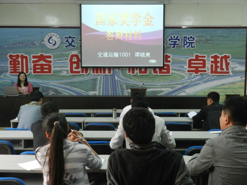10月8日下午,我院国家奖学金、省政府奖学金评选答辩会在12号教学楼201会议室举行。答辩会由团总支副书记刘灿德主持,入围评选学生及教师评议小组代表和学生评议小组代表一同参加。
