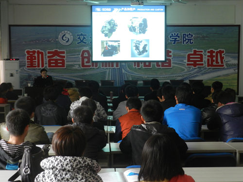 招聘会分为宣讲和笔试两个环节。宣讲会上,云内动力公司技术部部长刘海峰首先介绍了此次招聘会的具体流程。他从公司的发展历程开始讲起,简要介绍公司发展至今的大事记,结合丰富的图片向学生展示公司的各类产品及研发方向。刘海峰以公司“感恩、责任、学习、快乐”的员工精神为中心,全面展现了丰富多彩的企业文化,使学生对公司概况有所了解。该企业相关负责人于总就员工福利、薪酬待遇、缴费比例等学生较为关心的问题作了陈述,并一一解答学生的提问。宣讲会结束后,部分学生投递简历并进行了笔试。