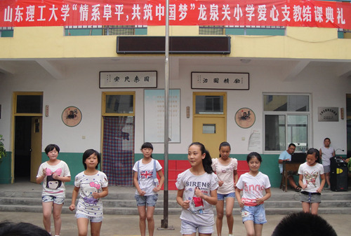 8月4日上午,我院“情系阜平,共筑我的中国梦”支教服务活动于河北省阜平县龙泉关小学举行结课典礼暨结课联欢会。龙泉关小学校长王浩,支教团全体队员,学校全体学生参加了此次典礼。