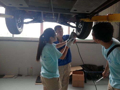 实践第三天早上从学校出发时,天空下起了蒙蒙细雨,天公并不作美。但像这种进企业实践的机会本来就少,实践团的成员十分珍惜此次机会,因此冒着雨向目的地进发。到达实践地时,该公司相关人员热情接待我们,并根据队员实际情况安排他们做一些简单可行的工作,并由专门的师傅在旁指导。上螺母,搬零件,装配汽车,一系列工作给队员们带来无法言喻的成就感,实践队员们普遍反应亲自动手之后才体会到每一项工作都需要认真细心才能做好,虽然零件小,但每一个都有它重要的作用,丝毫不能马虎。