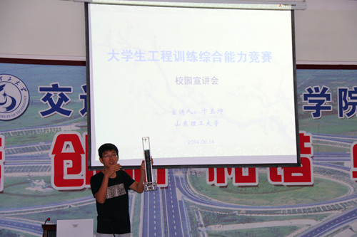 9月4日,我院于12号教学楼201教室举行“无碳小车”创新设计与制作报告会。此次报告会由第三届全国大学生工程训练综合能力竞赛全国第四名获得者——我院学子卞玉帅主讲,我院车辆系副主任刚宪约及部分师生代表参加。
