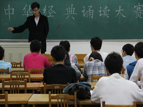 比赛伊始,主持人宣布了评分标准与评分要求以及这次活动的主题:品经典之美,寻圣贤之道。继而第一名选手杨成龙上场朗诵诗歌《相信未来》,“朋友,坚定地相信未来吧,相信不屈不挠的努力!”一句句诗歌融着如火焰般的热情,和着慷慨激昂的语调,给人以相信未来的坚定信心。而后选手们相继朗读了《滕王阁序》、《将进酒》等著名中国经典传统诗歌。选手们诗情合一,读至情深处喉声低沉呜咽,让人如身临其境般感受中华传统文化气息。