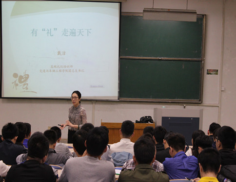 5月6日晚,我院于4号教学楼101教室举行主题为“有‘礼’走遍天下”的主题班会。此次班会由我院团总支书记戴洁主讲,12级车辆工程专业全体学生参加。
