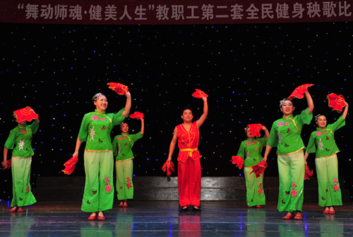 6月11日下午,由校工会、妇委会组织的我校“舞动师魂•健美人生”第二套全民健身秧歌比赛在音乐学院音乐厅举行。我院教职工代表队在比赛中博得满堂彩,以傲人的成绩位列15支代表队之首,斩获一等奖殊荣。校党委副书记张宇声,党委宣传部、校工会以及有关部门、学院的相关负责人也来到现场为参赛队员加油喝彩并为获奖代表队颁奖。