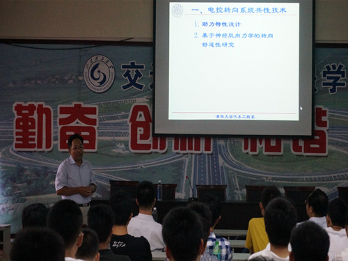 为提高我院车辆专业学生对电控转向系统相关技术的认识,6月26日下午,我院于12号教学楼201教室举行“电控转向系统相关技术”学术报告会。此次报告会特邀清华大学汽车工程系教授季学武主讲,我院部分教师及车辆专业学生参加。