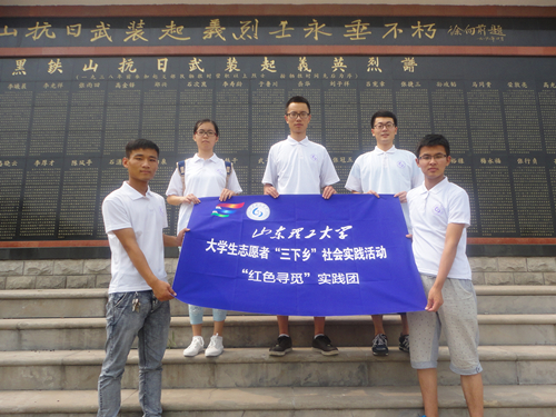 为探访红色革命基地,寻访红色革命故事,引导学生们认清历史、尊重历史、铭记历史,增强学生们的民族自尊心、自信心,使学生们更加珍惜今天来之不易的幸福生活,17日上午,我院“红色寻觅”实践团队部队员,在该队副队长王彬的带领下,前往淄博市黑铁山风景区,参观黑铁山抗日武装起义纪念碑、纪念馆。