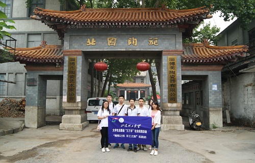 队员们经过一上午的走访调查发现古窑村虽然破旧但是并不落魄,有些古窑依然散发着历史的气息,队员们就古窑的现状和保护进行了初期的讨论。队员们与在美陶厂原址的马克思主义学院的郑炳心老师会合后,听取指导老师的实践指导意见。同时,向老师详细报告实践进度,随后该队对美陶厂原址进行了细致的走访调研。来到桢寅堂陶艺工作室,队员们受到工作室人员的热情接待。走访过程中,手工艺师傅向我们展示了揉泥和拉坯的制作过程,同时耐心讲解从炼泥到烧制的工艺流程。