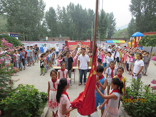 7月21日上午9时许,我院“情系阜平,爱心支教”支教服务团队在河北阜平县石猴小学举行开学典礼,石猴小学校长王金良、爱心支教服务团全体队员及该校学生参加了此次开学典礼。