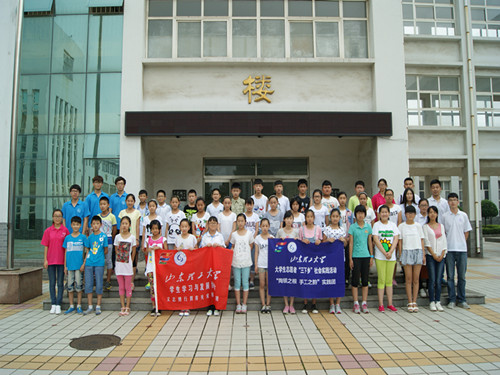 到达目的地之后,实践团队成员与友队成员协同合作,简单的交流了两队的实践经验和想法。下午,该实践团队成员观摩了友队的教学过程,就教学方法和实践调研过程中应注意的问题进行了探讨。他们谈到,社会实践应遵循安全第一、实践第二的原则。有限的支教时间给孩子们在知识上的帮助有限,只能利用短暂的时间给孩子们带来对美好生活未来的向往。最后,友队带领该实践队成员参加了学校体育场,并和孩子们进行了合影留念。