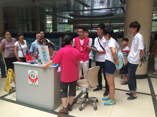 团队成员们也来到了淄博市中心医院与“仁爱”志愿服务团队交流。在交流中“仁爱”志愿服务团队表示如今学生来做志愿的不少,不过一般都是周六周天来,而周一到周五病人最密集的时候,学生由于有课程,无法进行志愿活动,来的相对较少,会对志愿服务活动产生一定影响。该团队负责人还表示,他们非常需要志愿者,急诊上的志愿者需求量尤其大,病人的搬运等工作需要男青壮年,而做志愿的四十多岁的女性居多,他希望能有更多的人加入志愿服务者的行列。