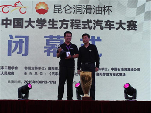 近日,2015昆仑润滑油杯中国大学生方程式汽车大赛油车赛在湖北省襄阳市梦想方程式赛车场落下帷幕。我校交通与车辆工程学院“至尚方程式赛车队”首次参赛并斩获“最佳新秀车队”称号。