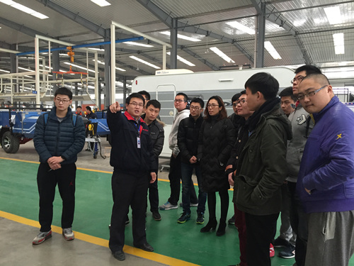 为提高大四毕业生对就业趋势的认识,加强学院与企业之间的合作,12月26日,我院16名大四学生在副教授李迪、团总支书记戴洁的带领下前往威海荣成康派斯房车有限公司进行为期一天的参观学习。