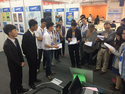 4月23日下午,经过一天的紧张布置,在带队老师国睿的带领下,“任我行”代表队成员于其备战区域同来自69个高校的1200余件作品等待评审团队的专家问辩。问辩过程中,做足准备的他们应答如流,面对评审团队提出的问题,成员们以自己所学的专业知识进行作答,得到评审团队的肯定。最终,“任我行”代表队于决赛中获得C类作品三等奖。