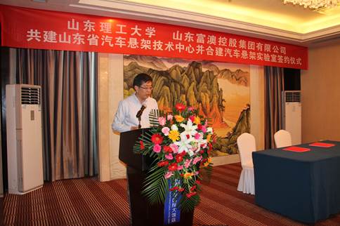 5月4日上午,我校与山东富澳控股集团有限公司共建山东省汽车悬架技术中心和汽车悬架实验室科技合作协议签约揭牌仪式在蓝海国际大酒店会议中心举行。校领导张祥云,淄博经济开发区管理委员会主任张承友、副主任陈安平,山东富澳控股集团有限公司董事长兼总经理王正红,我校科技处处长魏修亭,我院书记张建、副院长杨先海、周长城教授、刚宪约副教授以及淄博市科技局、淄博市机械行业管理办公室、山东富澳控股集团有限公司有关人员出席会议。