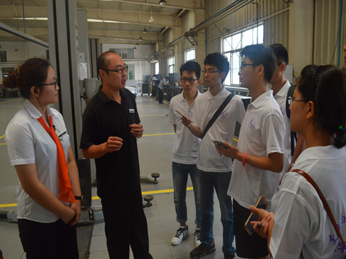 下午,实践团成员又来到了维修与保养车间,负责人带领实践团成员们首先参观了汽车保养车间,了解具体的保养事宜,并给大家做出了详细的讲解。“车主们一定要注意对于汽车的保养,听取专业人士的建议,避免对自己的爱车造成不必要的伤害。”负责人给出了这样的建议。随后,大家又来到了维修车间,喷漆技术人员亲自演示了对于汽车划痕的处理、清理以及喷漆过程。汽车整形技术人员对汽车的碰撞问题作出了详细的讲解,并现场演示车身修复。