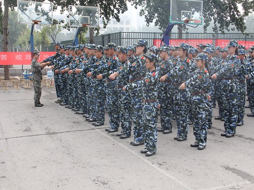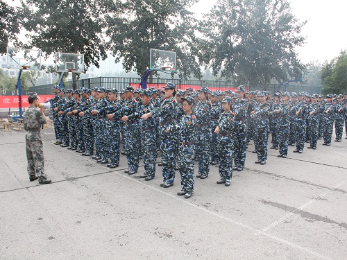 我院新生此次军训在第四体育场举行。清晨的小雨带来了凉爽的天气,为同学们的训练提供了不少便利,蓝蓝的天空与迷彩军装相互辉映,让同学们显得活力十足。军官们严格要求新生整理军容和端正军姿,不时亲自示范,并手把手纠正基本的动作,同学们在英姿飒爽的军官的带领下认真训练,丝毫没有半点偷懒。在部队教官亲切的关怀和严格训练下,在短短的三天里,齐步走、正步走、齐步变正步、解散、集合及分列式等预定训练科目已初见成效。