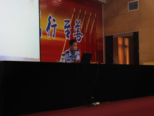 稍做休息后,新生们迎来第二场关于安全教育的报告会,此次报告会由学区派出所的警官唐家民和学校保卫处治安一科科长郝鹏主讲,为大家讲解有关安全教育的预防知识。唐家民首先为与会人员讲解安全知识,重点是如何预防诈骗。他讲述的大量诈骗事件,受害者主要为在校大学生,触目惊心的事例让与会人员提高了警惕,接着唐家民将具体事例和预防知识结合起来,严肃的语气中不失幽默,讲解了在日常生活中应注意及提防的事项。唐家民讲解后,郝鹏先总结了预防诈骗的几点预防措施,随后重点讲述消防安全、校园交通安全及校园公共场所财物安全。大屏幕上,火灾数据让人触目惊心。发生在校园内的交通安全事故也更使学生们警惕。郝鹏提醒与会人员,一定要保护好自己的个人财物,如果财物丢失,要及时报警,力求将损失降到最小。最后他将校园安全知识做了一个总体的概括,并将学校及学区的报警电话留下,提醒与会人员有问题及时报警。