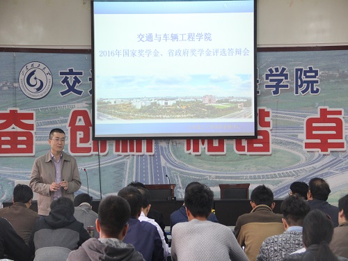 10月16日下午,我院在12号教学楼201教室举行2016年国家奖学金、省政府奖学金评选答辩会,会议由党总支副书记刘兴清主持,由相关专业老师、各年级辅导员、学生代表组成的22名评委负责评选工作,14名候选人将进行答辩。