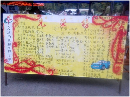 汗水挥洒过的赛场,留下健儿们拼搏的足迹,回荡着观众的欢呼喝彩,此时金秋见证了运动会健儿们的魅力与风采。10月21日下午,我校2016秋季运动会在第二体育场圆满落幕。经过运动健儿,教职工两天的共同努力,我院在此次运动会中取得佳绩,我院体育成绩第四,道德风尚奖第二,同时也在不同的运动项目中拿得不错成绩,教职工男子A组跳远荣获第二,男子B组1500米第三。学生男子甲组100米第二,男子甲组4×100米第一,男子甲组110米栏第一,女子甲组200米第二。