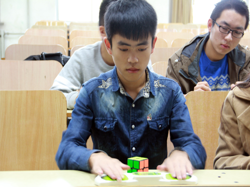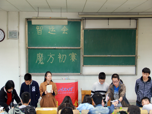 为丰富我校大学生课余文化生活,10月30日下午,由仙弈围棋协会、大学生桥牌协会、魔方协会等6个社团联合举办的我校第七届智力运动会——魔方项目初赛于5号教学楼102室举行。来自各学院的20余名学生参加此次比赛。