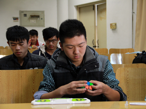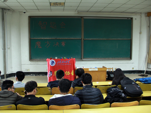 11月3日下午,由仙弈围棋协会、大学生桥牌协会、魔方协会等6个社团联合举办的我校第七届智力运动会——魔方项目决赛于3号教学楼207室举行。