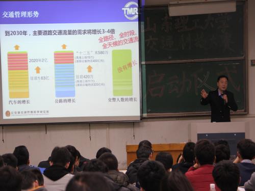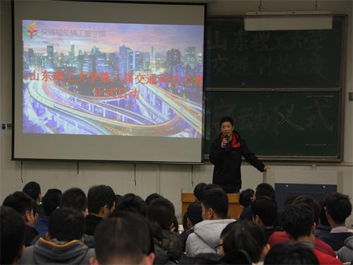 11月26日下午,我院在四号教学楼105教室举行山东理工大学第三届交通科技大赛启动仪式,此次大赛由创新创业学院主办,交通与车辆工程学院智能交通协会承办,淄博市公安局交通警察支队科长李庆印,山东理工大学交通与车辆工程学院党总支副书记刘兴清,交通工程系副主任孙锋,交通与车辆工程学院辅导员赵鹏以及15级、16级交通工程、交通运输专业的学生参加此次仪式。