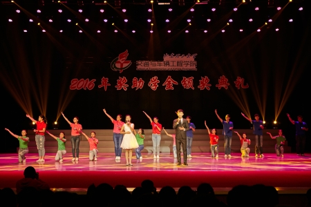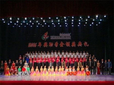 12月11日晚,我院2016年奖助学金颁奖典礼于大学生艺术中心礼堂举行,校党委常委、副校长张祥云,企业代表潍坊瑞驰汽车系统有限公司总裁张金磊,聊城中通客车控股股份有限公司总经理助理王传甫等,校党委宣传部、学生工作部、团委、教务处、研究生院、招生就业处、交通学院等院部领导为奖助学金获得者颁奖,并与学院师生代表一起观看了精彩的文艺演出。