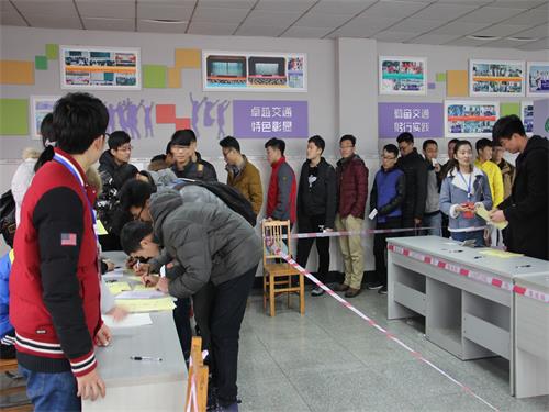 正式投票之前,张建宣布投票选举大会正式开始,并现场宣读选举张店区第十七届人民代表大会代表选举方法和正式代表候选人名单以及选举投票注意事项。随后选举投票正式开始,大会现场分设为教工投票与学生投票环节,工作人员认真查验选民证、发选票、引导选民有秩序的进行投票。截止12时,投票环节结束,总计2332名选民按照验证、发票、填票、投票的顺序依次投下自己神圣的一票。