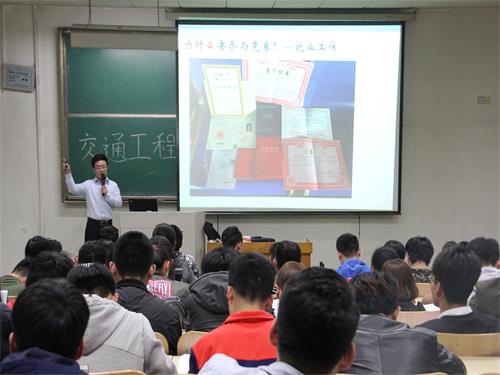 此次活动围绕为什么要参加竞赛、可以参加什么竞赛、如何参加竞赛三个问题展开。赵金宝就为什么参加竞赛明确提出了评奖评优加分、素质能力加分、读研深造加分、就业工作加分四项益处,其细致的讲解让同学们充分理解到参加竞赛的重要性。紧接着列举了我院学生可以参加的各类竞赛,并着重介绍了六项其推荐给我院学生参加的竞赛,让同学们充分发挥自己的特长,参加适合自己的竞赛。对于如何参加竞赛这个问题,赵金宝提出以班级为单位,综合班级成员兴趣爱好和特长,自主分为不同竞赛小组,并指出要培样团队意识,提高团队协作能力,班级内交流参赛资料经验,提高班级整体竞赛水平。活动最后,赵金宝对最近山东理工大学首届智能交通与创业大赛暨第二界全国高校智能交通创新与创业大赛作出宣传,希望有想法、有能力的同学积极参赛。