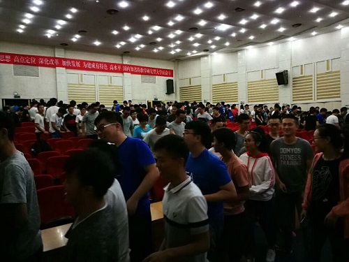 会议开始之前,王建兴组织同学们进行逃生演练,让其掌握基本的逃生技能。在完成演练后,会议正式开始。主讲人刘盛强从重型卡车的发展历程及自身的成长之路、大学生人生规划三个方面,给同学们带来了精彩的演讲。首先在重型汽车方面,他从中国重型汽车的发展、国际重型汽车产品技术状况、重型汽车开发的先进技术和智能网联汽车等几个部分对同学们进行了详细的讲解。接着,他围绕着“我的汽车人生”展开自己的求学经历和大学毕业后的工作历程,其风趣幽默的语言风格及丰富的人生阅历,赢得了同学们的热烈掌声。最后,他讲到了如何规划自己的人生,告诉同学们没有理想没有梦想最可怕、大学生必须有一个正确的方向、成功的道路不只有一条、坚持很重要等等。他又以一个女孩子从平凡到伟大的故事,告诫同学们成功青睐做好准备的人,同学们应该为未来积蓄力量。