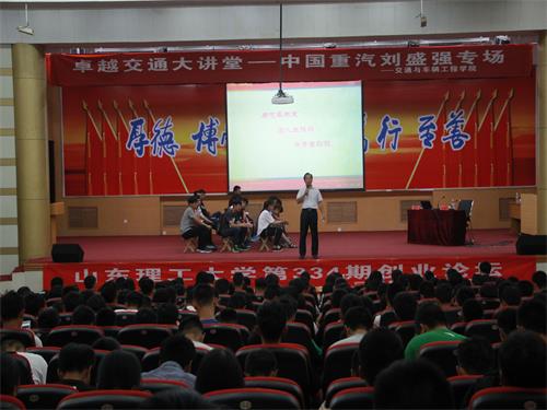 9月23日下午,我院特邀中国重汽集团有限公司规划及技术发展部技术合作处处长刘盛强于3号教学楼报告厅举行汽车•人生•规划交流分享会。此次分享会由我院副院长刚宪约主持召开,我院党总支副书记王建兴及部分教师、2017级全体学生参加此次会议。