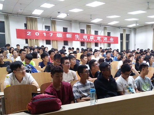 9月27日晚,我院于五号教学楼301、303、305三个教室举行了权益宣讲会,参加此次会议的有校学生会权益部、院学生会生活部以及我院2017届全体新生。