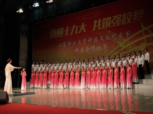 为喜迎十九大,共筑强校梦。10月15日下午,由我校宣传部、工会及校团委主办、音乐学院承办的山东理工大学科技文化艺术节师生合唱比赛初赛于大学生艺术中心礼堂顺利举行。此次比赛共有来自不同学院的20支合唱团参加,来自音乐学院的多位知名指导老师担任评委。