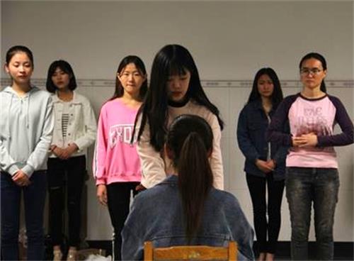 接着她从站姿、走姿、节拍感、坐姿、礼仪手位五个方面入手,为参训人员一一纠错。为了达到更好的培训效果,卞小如通过现场互动及现场示范的形式调动气氛,增强了参训人员的参与性与积极性,并加深参训人员对礼仪知识的理解,使他们在良好的学习氛围中掌握许多实用性极强的社交礼仪知识。随后,在讲到走姿时,卞小如利用托盘、A4纸、证书等道具辅助教学,让大家依次演示正确的走姿,归纳总结走路时的小技巧。在培训过程中她反复强调节拍感的重要性,要做到心中有音乐节拍,脚下步伐从容有序。卞小如虽然以大学生艺术团礼仪部的标准严格要求大家,但松弛有度,给予大家一定的休息时间来缓解疲劳,使此次培训达到了预期的效果。