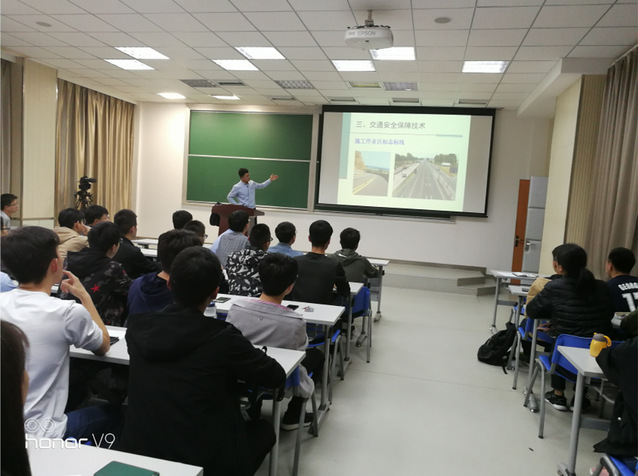 为进一步推进我院师生创新与实践能力培养和提升, 2018年4月25日下午,交通与车辆工程学院联合教务处于1号教学楼403教室举办题为“高校学生创新与实践能力培养提升——以《公路施工作业区交通安全保障技术》为例”的名师名课报告会,此次报告会特邀交通运输部公路科学研究院研究员、北京中交华安科技有限公司副总经理钟连德研究员担任此次报告会主讲人,我院分管教学副院长刚宪约主持,我院交通工程专业部分老师和学生参加此次报告会。