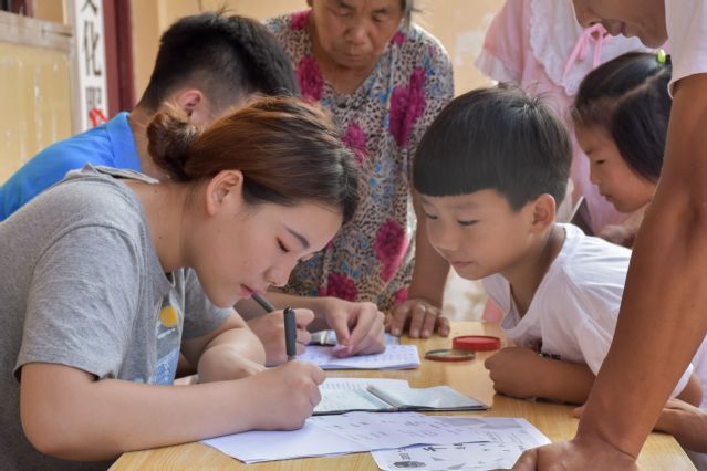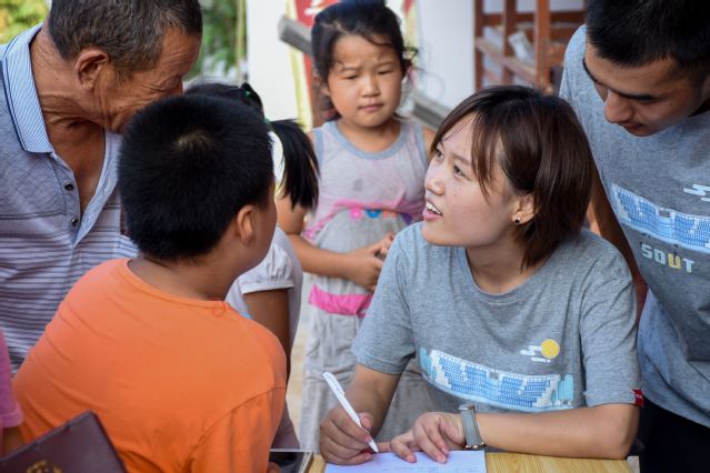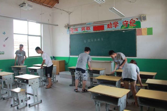 与此同时,另一组成员在村中向村民宣讲支教,采访村民对支教活动的种种看法。报名结束后,队员整理完毕学生信息对其进行分班并分完成教师分配任务。下午,团队成员再次清理了学校卫生,为明天的开学典礼做了充分准备。
