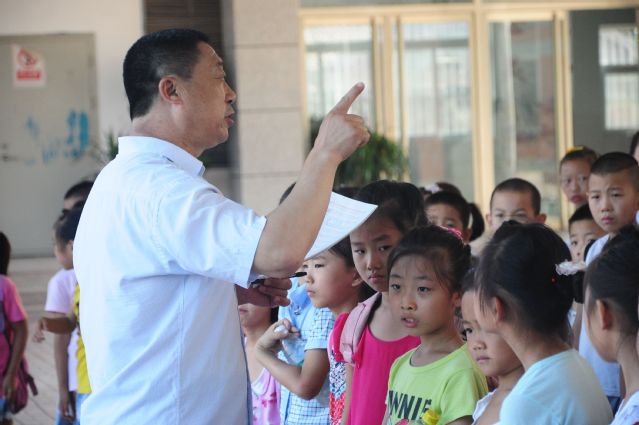 参加活动的学生到达学校后,实践团全体成员与学生于操场集合,短暂等待后,启动仪式正式开始。活动分为两部分,活动伊始,明德小学校长王建秀发表讲话,他先讲了暑假活动中的纪律和安全,明确了活动中的各种规定,确保支教活动能够顺利进行。随后他介绍了本次活动的课程安排,推荐学生选择多门课程学习。此次实行选课制度,课程包括英语课、书法课、美术课、音乐舞蹈课等,由学生自主选择感兴趣的课程。接着,各科老师对所负责课程进行简单介绍,并引导学生选课,学生们情绪高涨、态度积极。