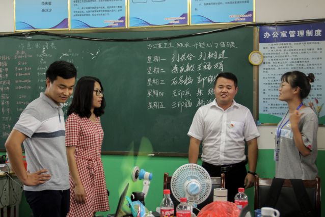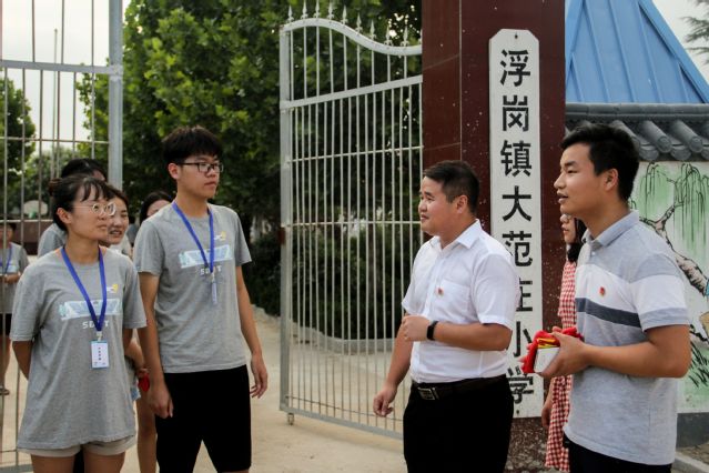 7月27日下午,因实践团队前期工作内容丰富宣传到位,浮岗镇团委书记张方庆、机关团支部书记王珩、组织干事毕慧哲和大范庄行政村党支部书记王守海主动联系实践团队并来到大范庄小学慰问圆梦暑期社会实践团队。
