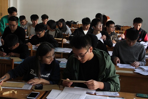 活动开始前,学风建设中心学习部全体成员整理15、16、17级上半学期单科成绩、下半学期单科成绩、学年综测成绩、家庭住址以及联系方式,并统一到打印室进行打印。同时,各班班长统计各年级学生详细家庭住址及联系方式,学习部全体成员对班长统计的家庭信息进行抽查验证,学习委员填写各班级同学学业警告通知。活动伊始,负责人王淳提到信封的填写注意事项,信封左上角写收信人的邮政编码,中间部分填写的地址应详细清楚,收件人的电话要准确,并且信封要选择合适的称呼,学校的邮政编码要正确。与会人员都认真听讲并记录相关注意事项。接下来,以学习部为主导,学风督察部和学业发展部为辅助,整理各班成绩并分别将每位同学的成绩条装进信封,填写信息,学风建设中心的工作人员各司其职并互相帮助。