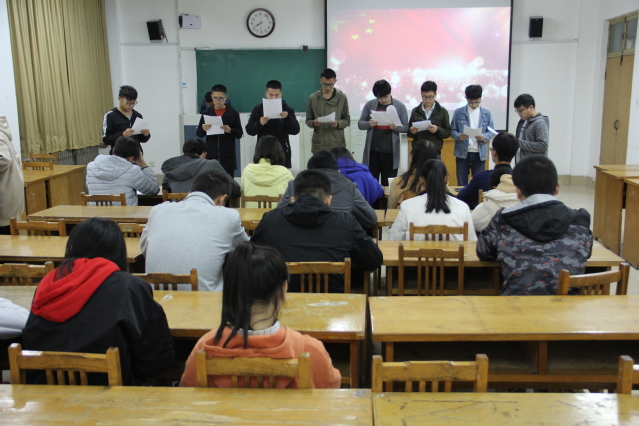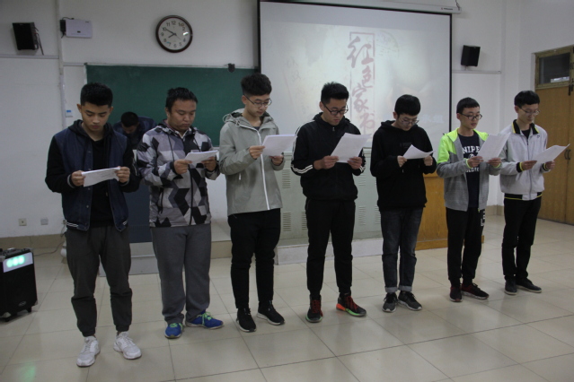 为响应中国画报出版社推出的《红色家书》项目,唤起同学们对亲情和谐的珍视,引起情感共鸣。10月27日晚,我院于12号教学楼211教室举办“诵读红色家书,牢记初心使命”活动。此次活动由我院青年建设部陈方圆主持,学生会各部门负责人雍鑫艺、贾梅、王淳、闫祎祯、蓝传宇、王家振担任评委,全体报名成员共同参加。
