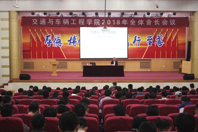 10月28日下午,我院在三号教学楼报告厅举行交通与车辆工程学院2018年全体舍长会议。会议由我院党总支副书记王建兴主持,我校学区派出所所长刘冲,团总支书记高萌,辅导员范晶晶及我院387名舍长参加。