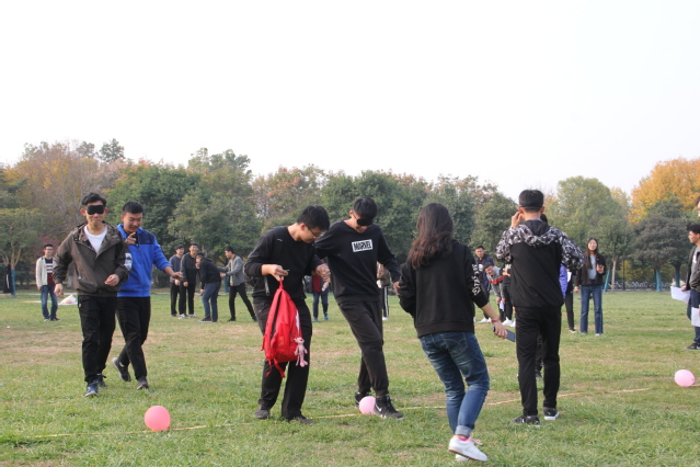 经活动负责人简单介绍流程后,活动正式开始。此次活动设置盲人踩球、五人六足、你划我猜、奔跑吧气球、管上过环五个游戏。各社团分为不同小组,游戏获胜的一组可获得较高的分数,最终按照总分来确定比赛名次。游戏过程中,成员们积极投入,在“盲人踩球”环节,每队两名成员互相合作,一名成员戴上眼罩并在起点处转圈,之后在另一成员的口令指挥下,从起点走到终点并踩爆气球,用时短者获胜。在“五人六足”的游戏当中,每一组派出五名队员,横向站成一排,将中间一成员的腿与旁边两人的左腿和右腿分别捆绑在一起,听到号令后开始出发,先到终点线的队伍获得胜利。队员之间配合默契,现场气氛活跃热烈。你划我猜”的游戏中,每队派两名成员,面对面站立,裁判手持卡片站在一名成员身后,另一成员根据卡片内容做出身体动作,猜出卡片内容多的队伍获胜。各个队的成员积极参与,踊跃猜题。其中,“奔跑吧气球”游戏环节,更是使活动现场氛围达到高潮。每一轮获胜的小组都会得到相应的积分和零食奖励,小组成员齐心协力,为小组的荣誉努力,越战越勇,现场笑声此起彼伏。联谊活动接近尾声,活动负责人根据比赛名次颁发了相应的奖励。
