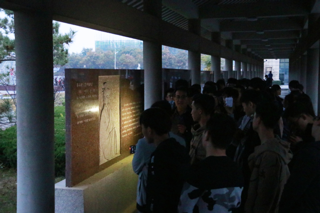 随后由齐鲁师范学院马克思主义学院院长刘振光亲自为参观人员讲解“齐鲁文化”,他讲道:“齐鲁文化的内涵是孝和忠,在家为孝,在外为忠”,还讲述了泰山石、孔子的故事以及“爱”和“礼”的含义。随后他带领同学们参观齐鲁文化长廊,讲述石碑上各个名人在齐鲁文化熏陶下的故事。参观过后,同学们纷纷表示受益匪浅,了解了许多关于齐鲁文化的知识。