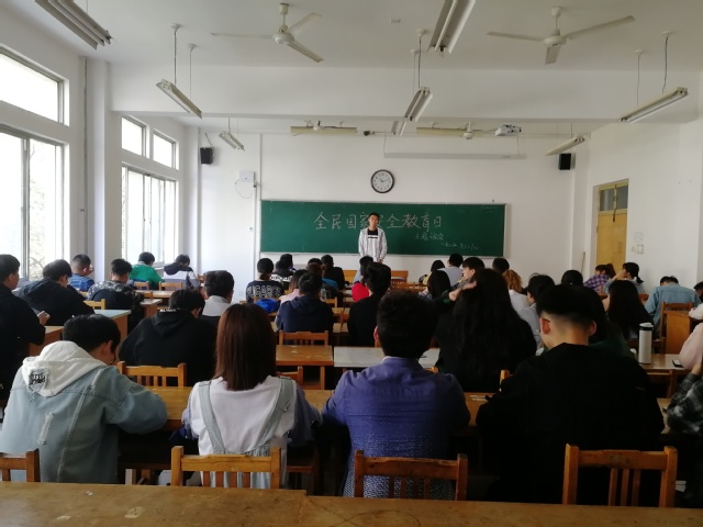 此次班会从观看安全教育视频、学习安全知识、深入讨论三方面展开。班会伊始,全班同学共同观看了全民国家安全教育宣传视频,宣传片通过言简意赅的话语和生动的画面而达到教育目的,大大加深了大家对于国家安全教育这一概念的理解。接着,赵在壮向同学们说明了此次班会的紧迫性和重大意义,随后分别就国家安全的重要性、国家安全法的立法背景、主要内容、制定及颁布国家安全法的意义、什么是危害国家安全的行为、公民在维护国家安全中的义务、大学生怎样维护国家安全等依次阐述,并借助身边的实例着重说明,中间贯穿了提问环节,提高了同学们的重视程度,参会人员都以严肃认真的态度对待此次班会并认真的做笔记。最后,同学们踊跃的表达了自己的理解和看法,现场氛围十分活跃。班会结束后,同学们纷纷表示,通过此次主题班会增强了国家安全意识,明白了自觉关心和维护国家安全是宪法规定公民的基本义务。